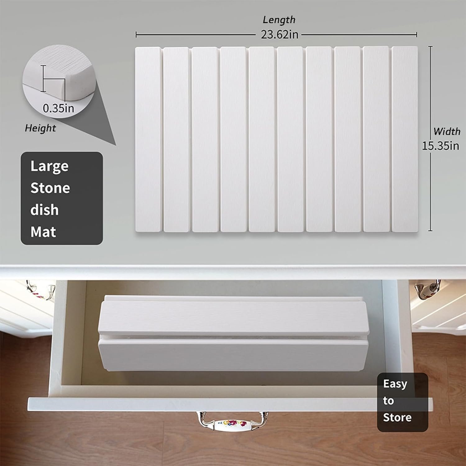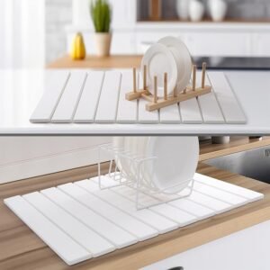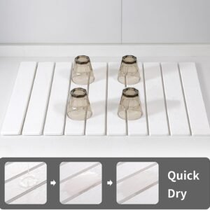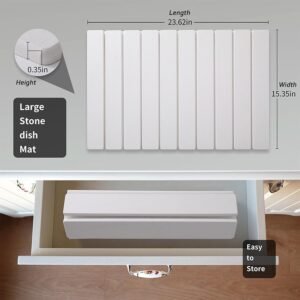 Stone Dish Drying Mat for Kitchen Counter, Stone Drying Mat Kitchen, Ultra Diatomaceous Earth Quick-Dry Absorbent Mat 23.6″×15.3″ (White)