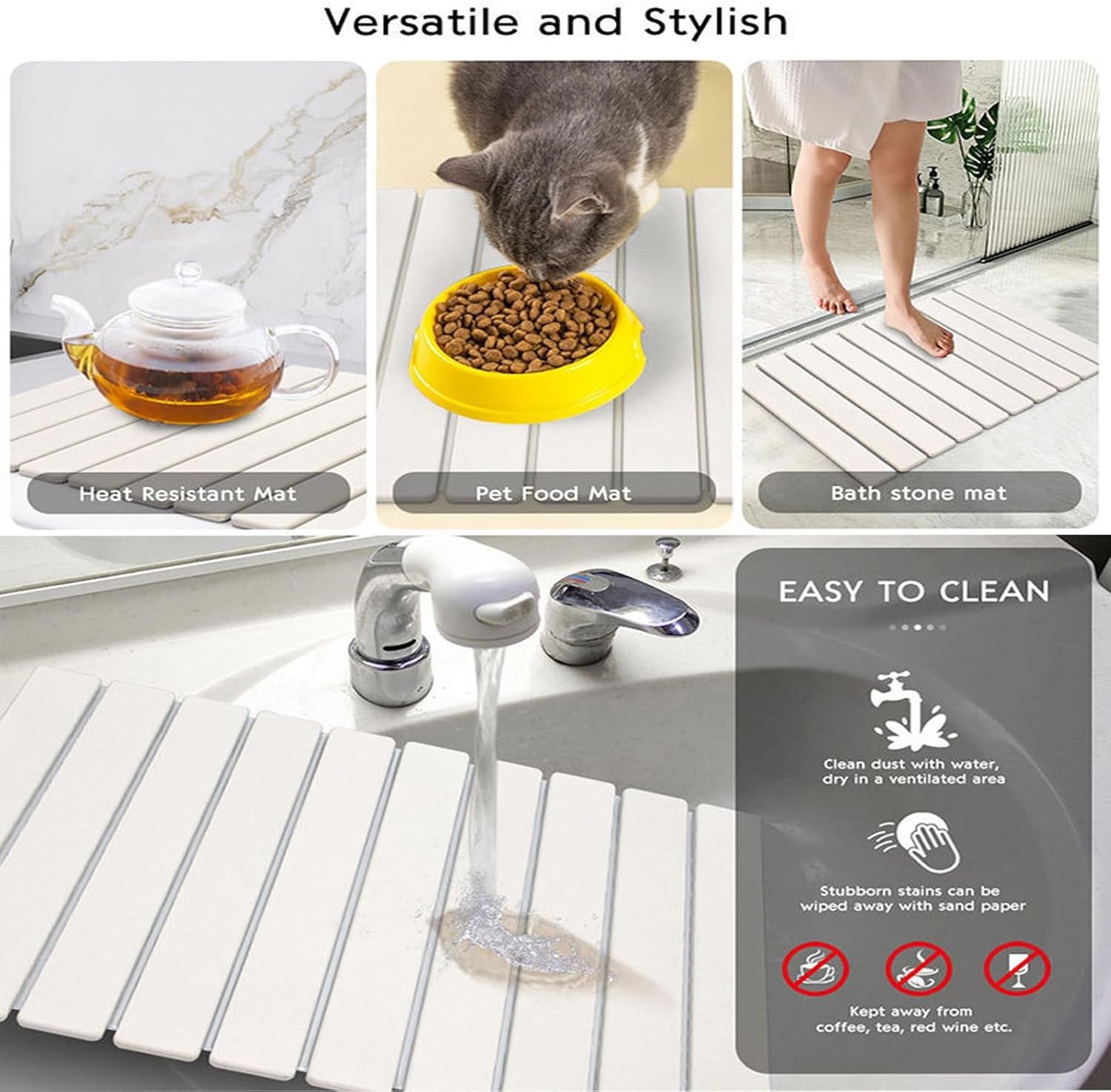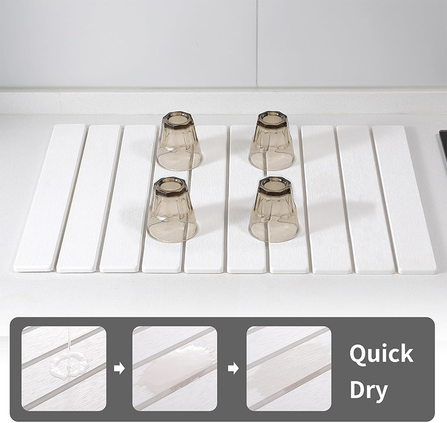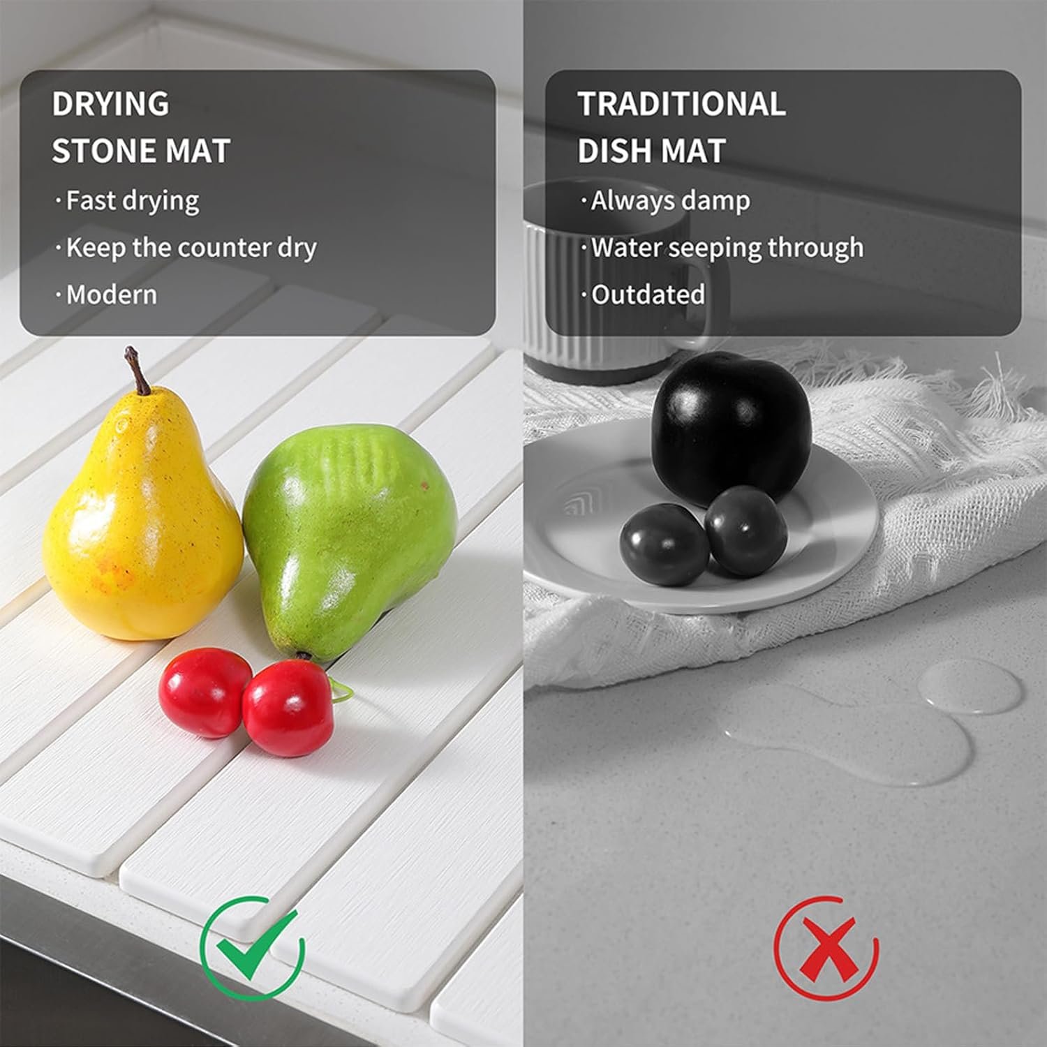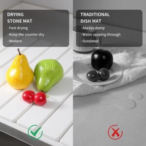 - 【Superior Quick-Dry Stone Mat】This kitchen countertop dish drying mat boasts exceptional water absorption. quickly soaking up moisture in minutes to keep your countertop dry and clean. Say goodbye to dampness and keep your kitchen surfaces spotless at all times.